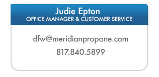To contact your local Customer Service Center click here, or call us at the number below. Our main office: Meridian Propane • 7808 Jacksboro Highway • Fort Worth, TX 76135 Customer Service and General Information - Call 817.840.5899 Our Mission: "Our mission is to provide you with affordable, efficient and clean burning propane and outstanding customer service experience for all of your residential, commercial and agricultural needs." – Jeff Rider |